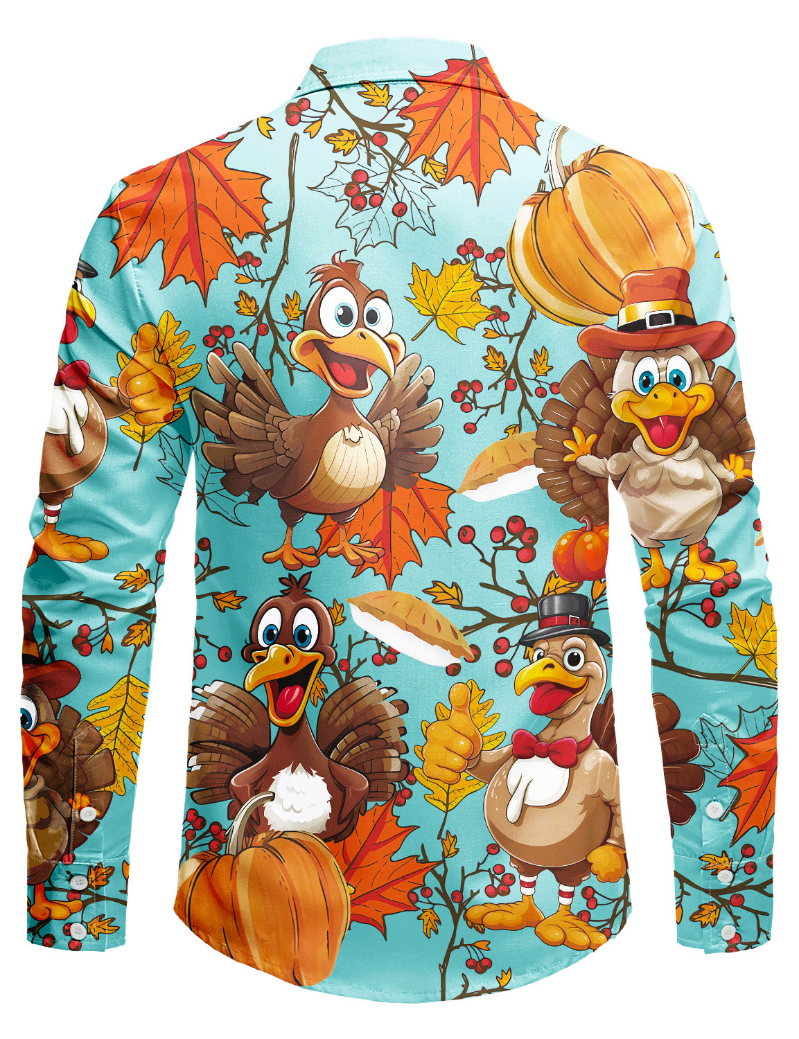 Men's Thanksgiving Funny Turkey Holiday Button Long Sleeve Shirt