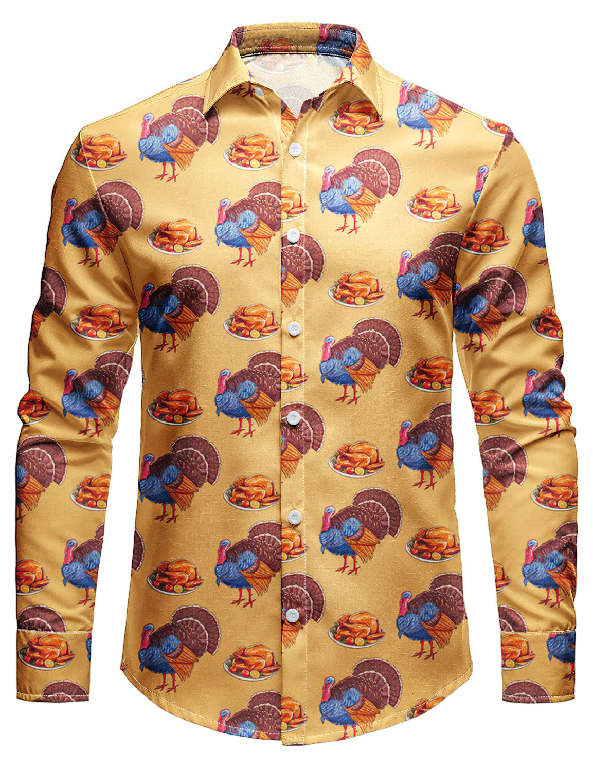 Men's Thanksgiving Holiday Funny Turkey Button Long Sleeve Shirt