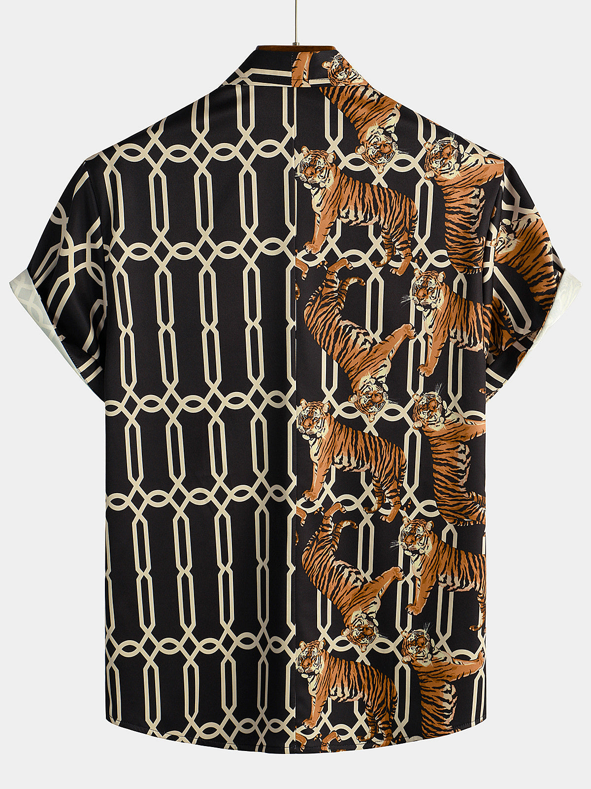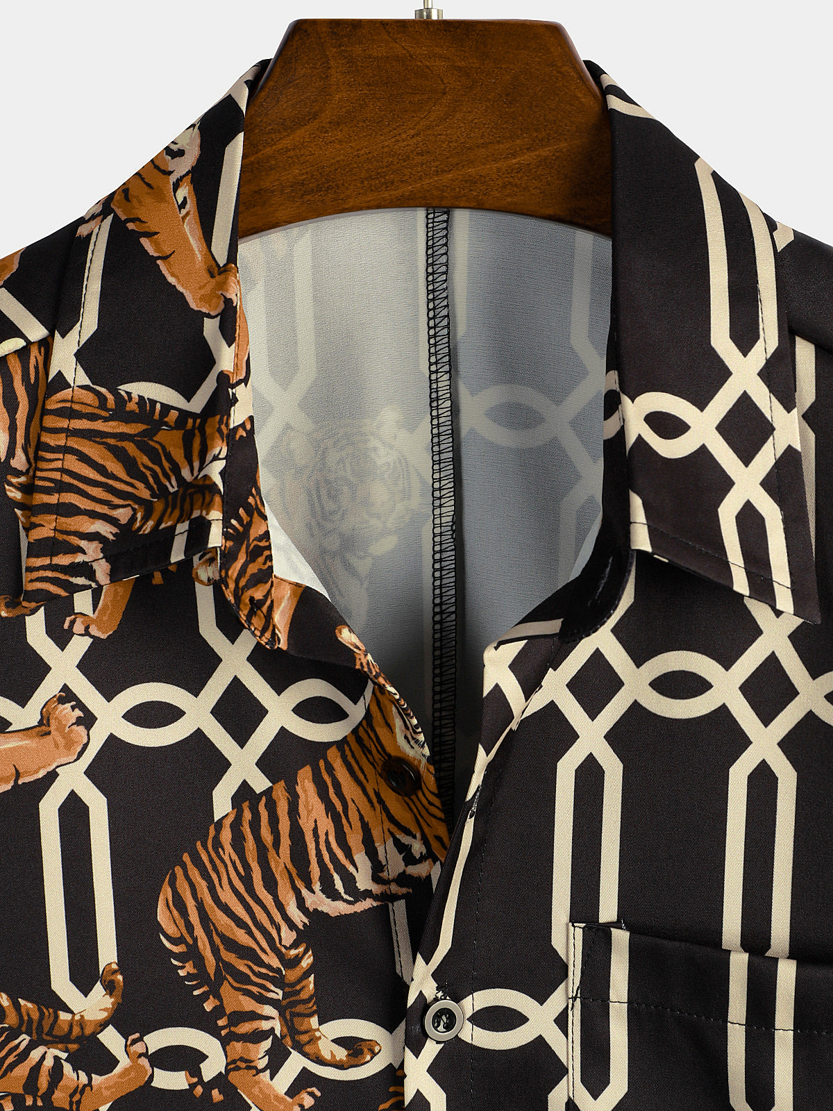 Men's Tiger Print Summer Pocket Short Sleeve Shirt