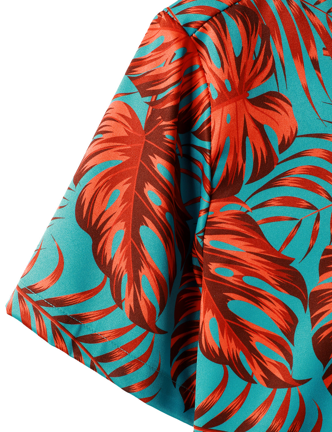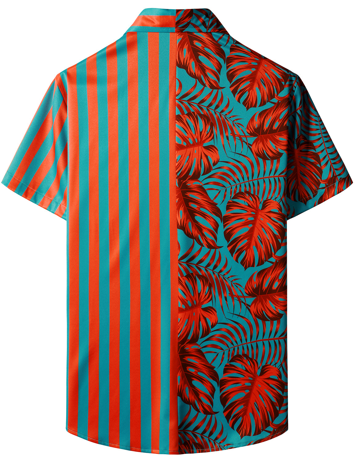 Men's Tropical Plant Leaf And Striped Print Hawaiian Short Sleeve Aloha Shirt