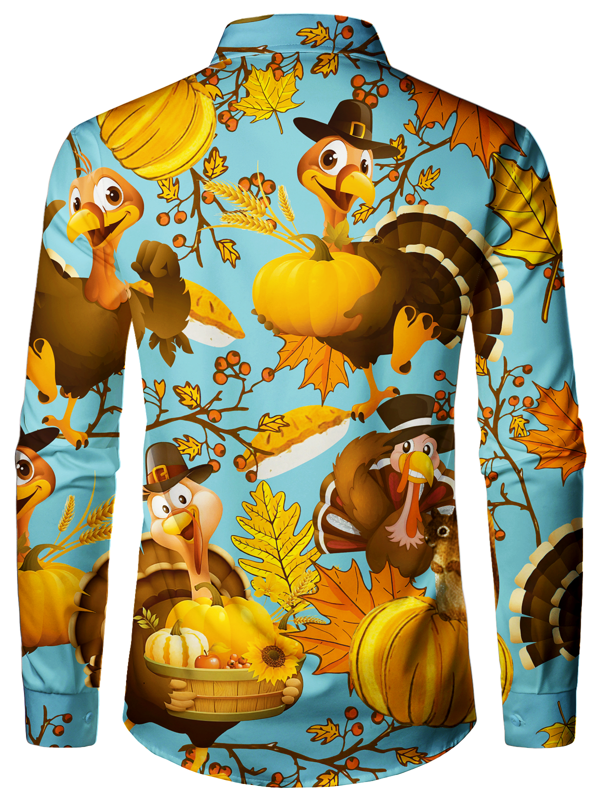 Men's Turkey Thanksgiving Button Up Funny Animal Thankful Holiday Long Sleeve Shirt