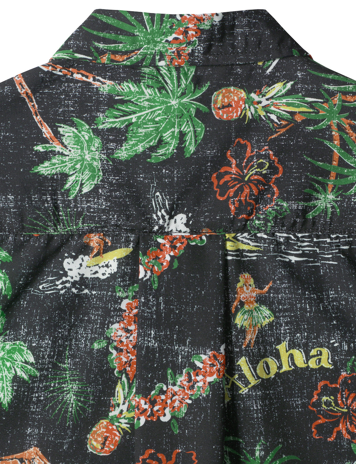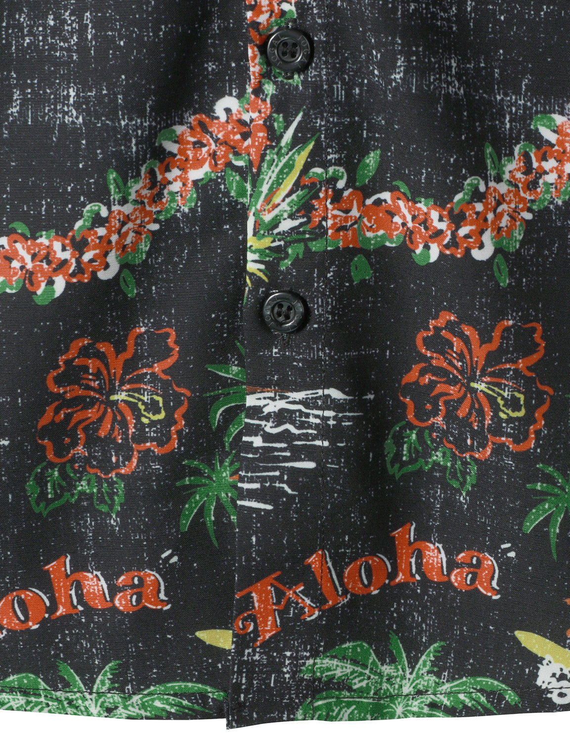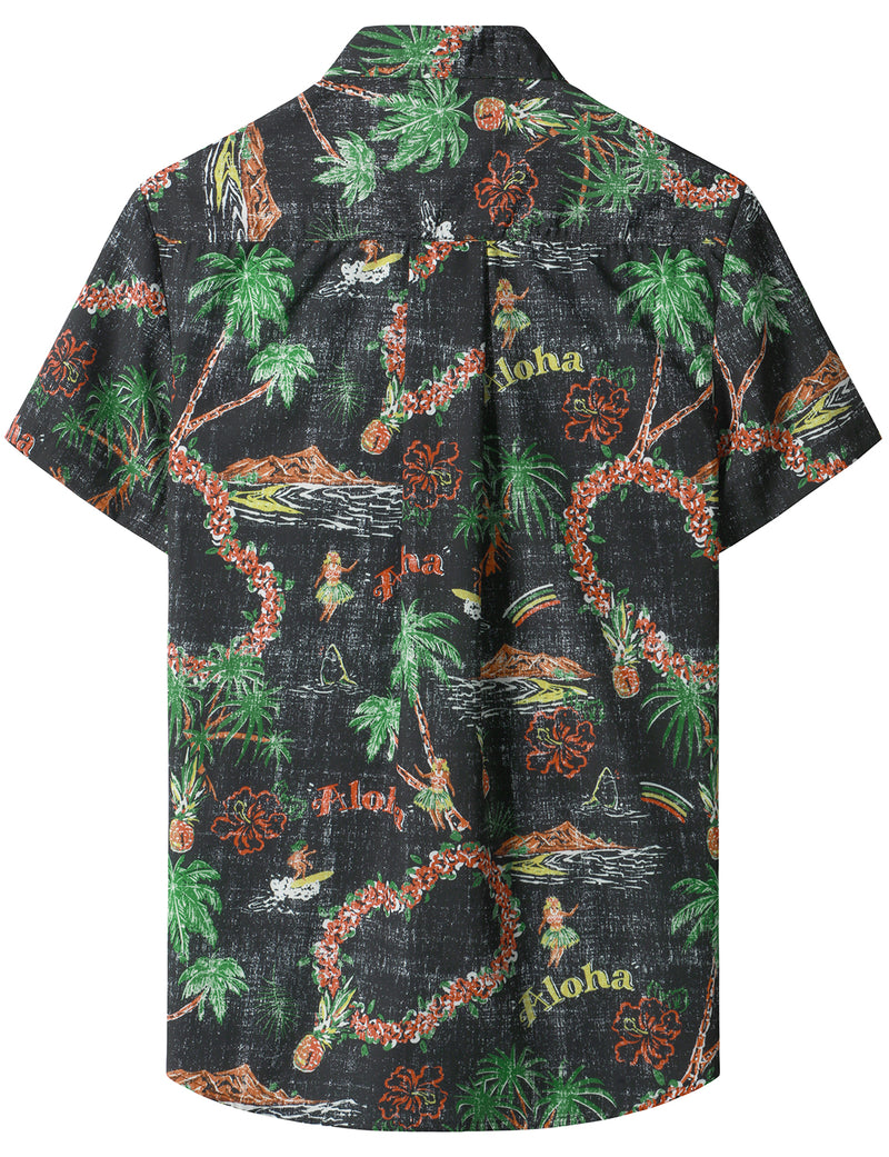 Men's Vintage Aloha Print Summer Short Sleeve Pocket Black Hawaiian Shirt