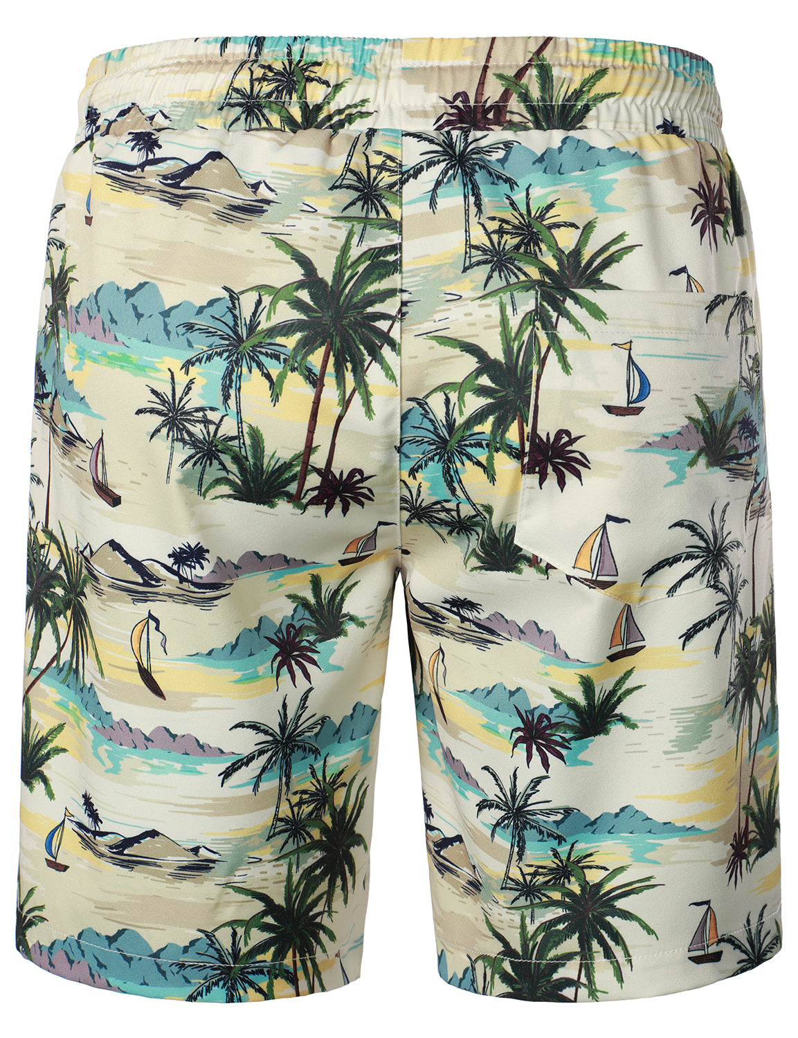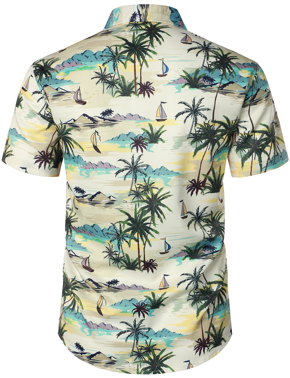 Men's Palm Tree Beige Island Summer Casual Hawaiian Matching Shirt and Shorts Set