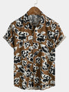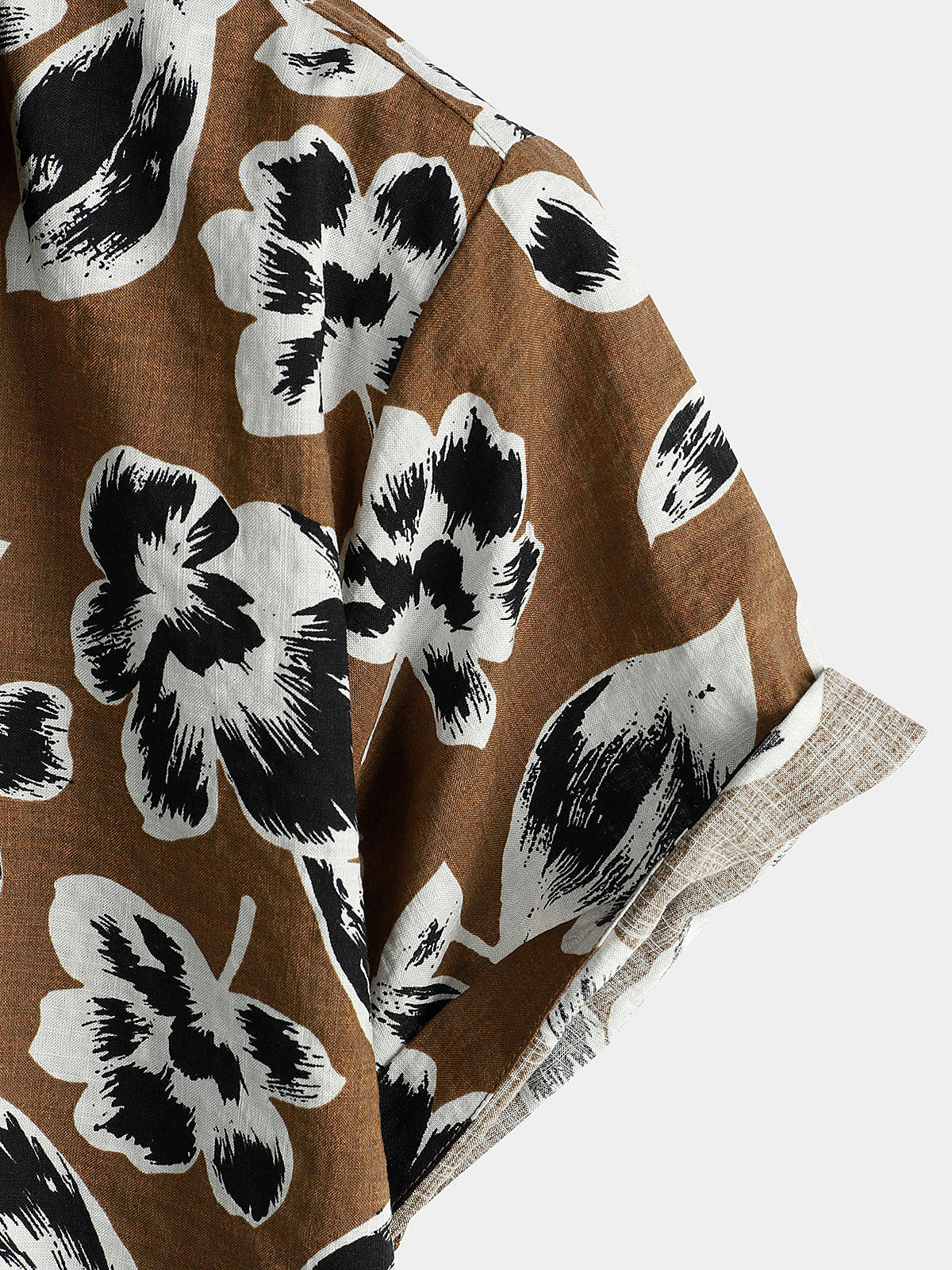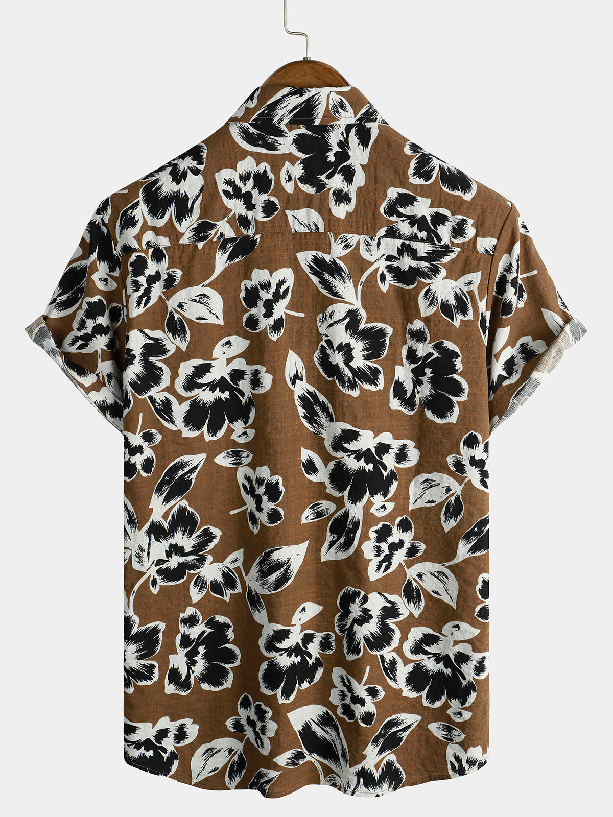 Men's Vintage Floral Breathable Cotton Brown 70s Short Sleeve Shirt