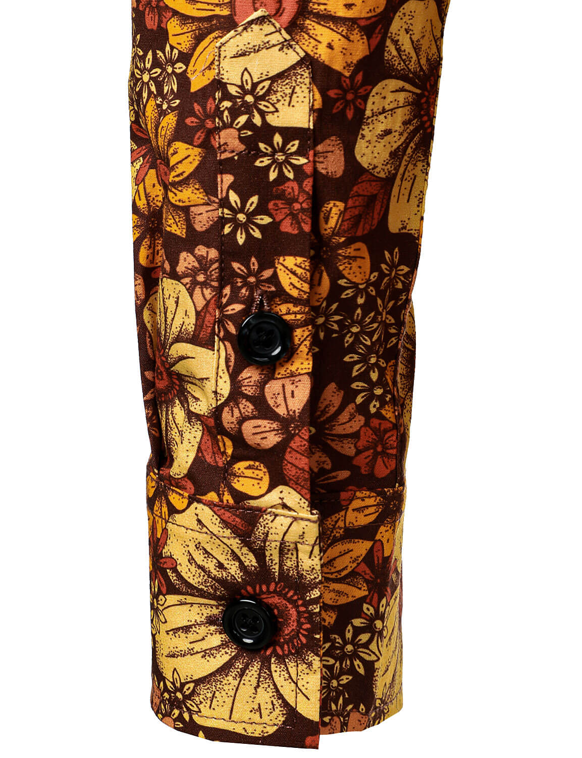 Men's Vintage Floral Button Up 70s Long Sleeve Retro Brown Shirt