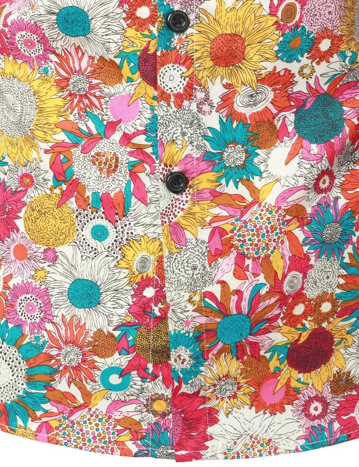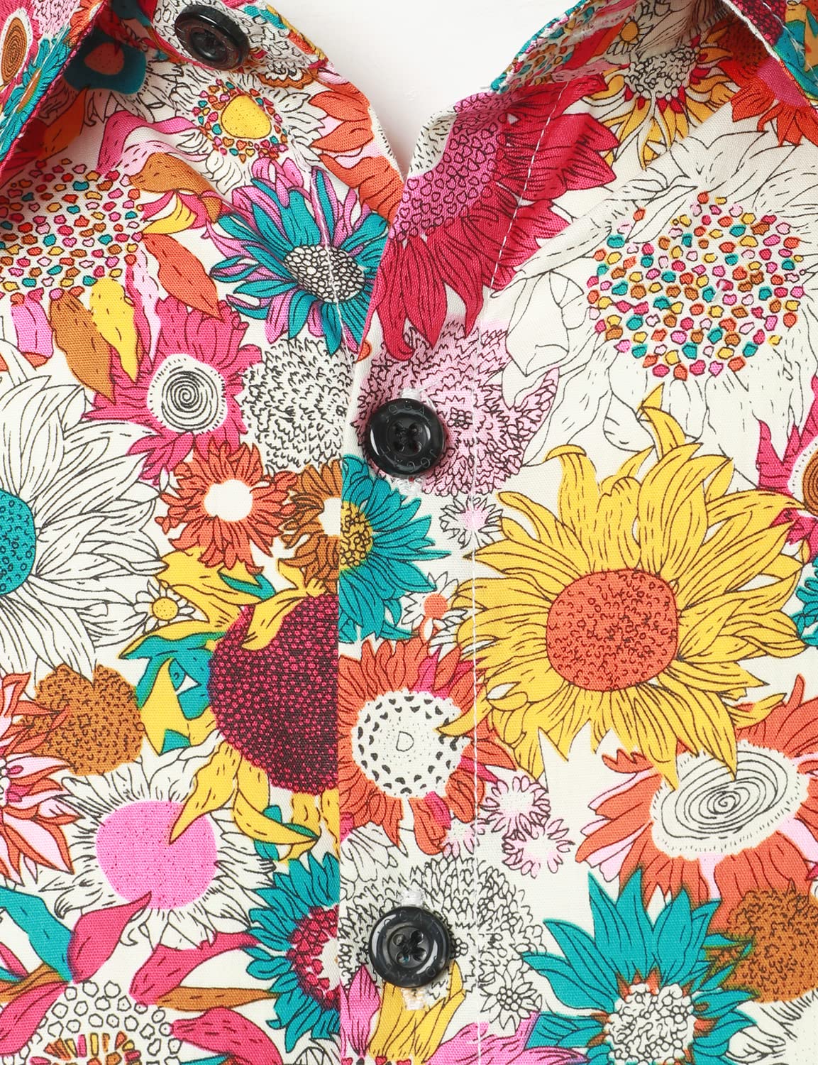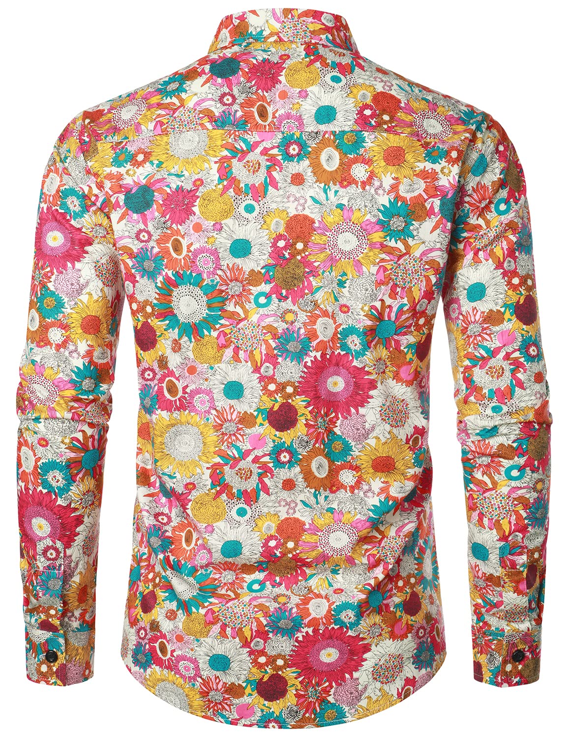 Men's Vintage Floral Print Cotton Flower Button Up 70s Long Sleeve Dress Shirt