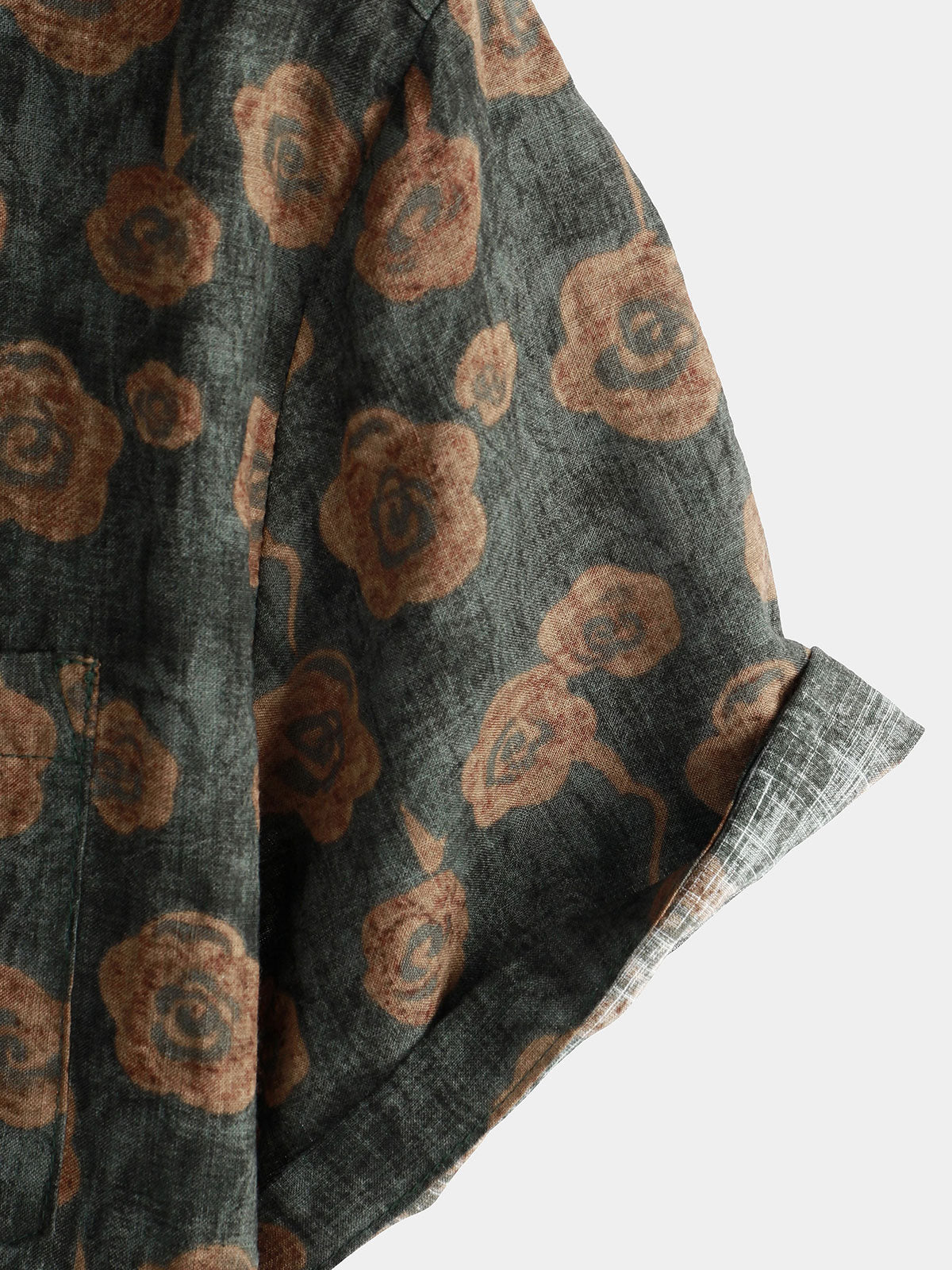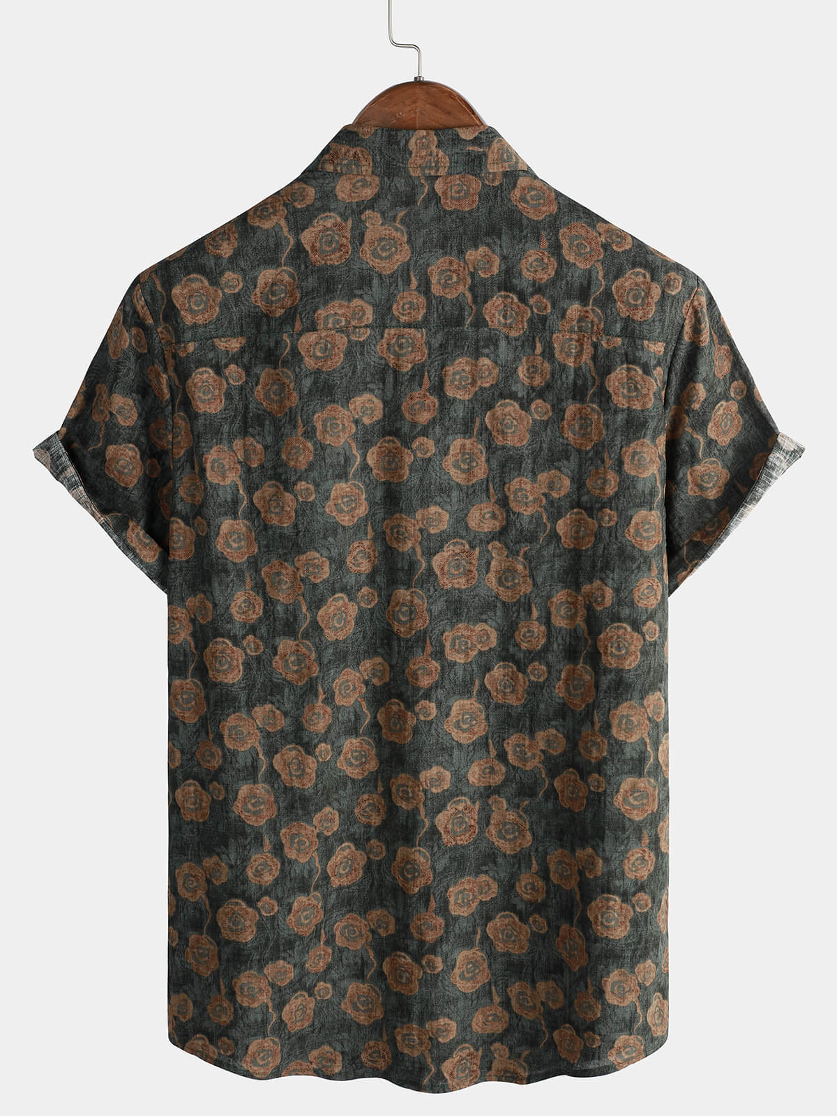 Men's Vintage Floral Holiday Pocket Summer Short Sleeve Button Up Shirt