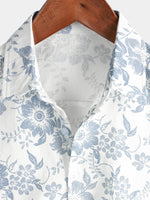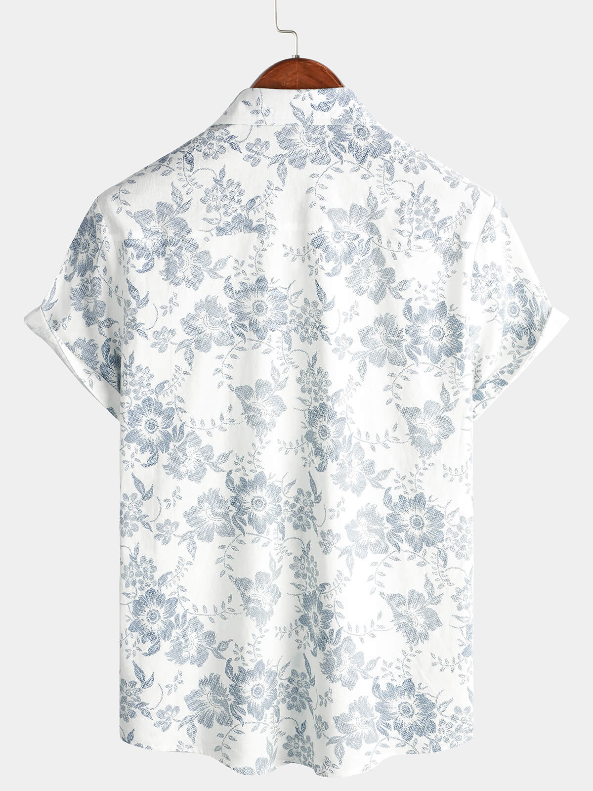 Men's Vintage Floral Print Flower Holiday Cotton Linen Breathable Short Sleeve Button Up White Hawaiian Summer Shirt