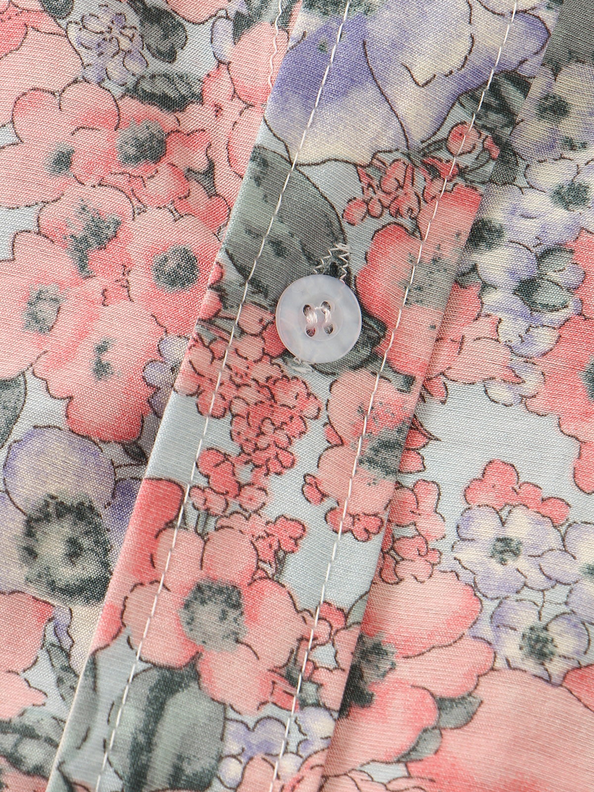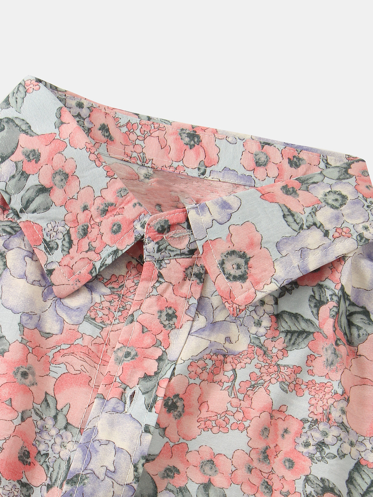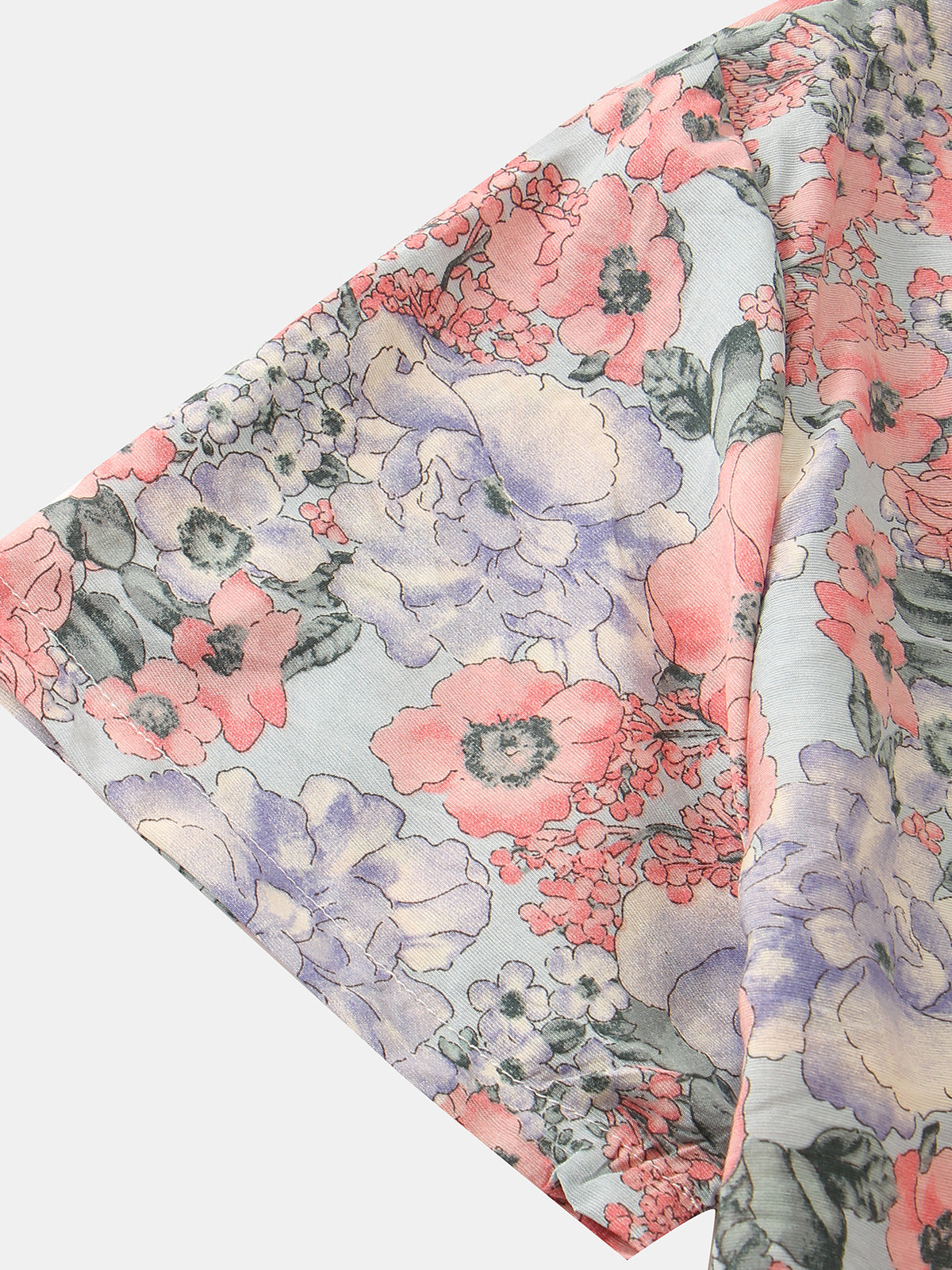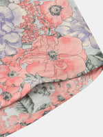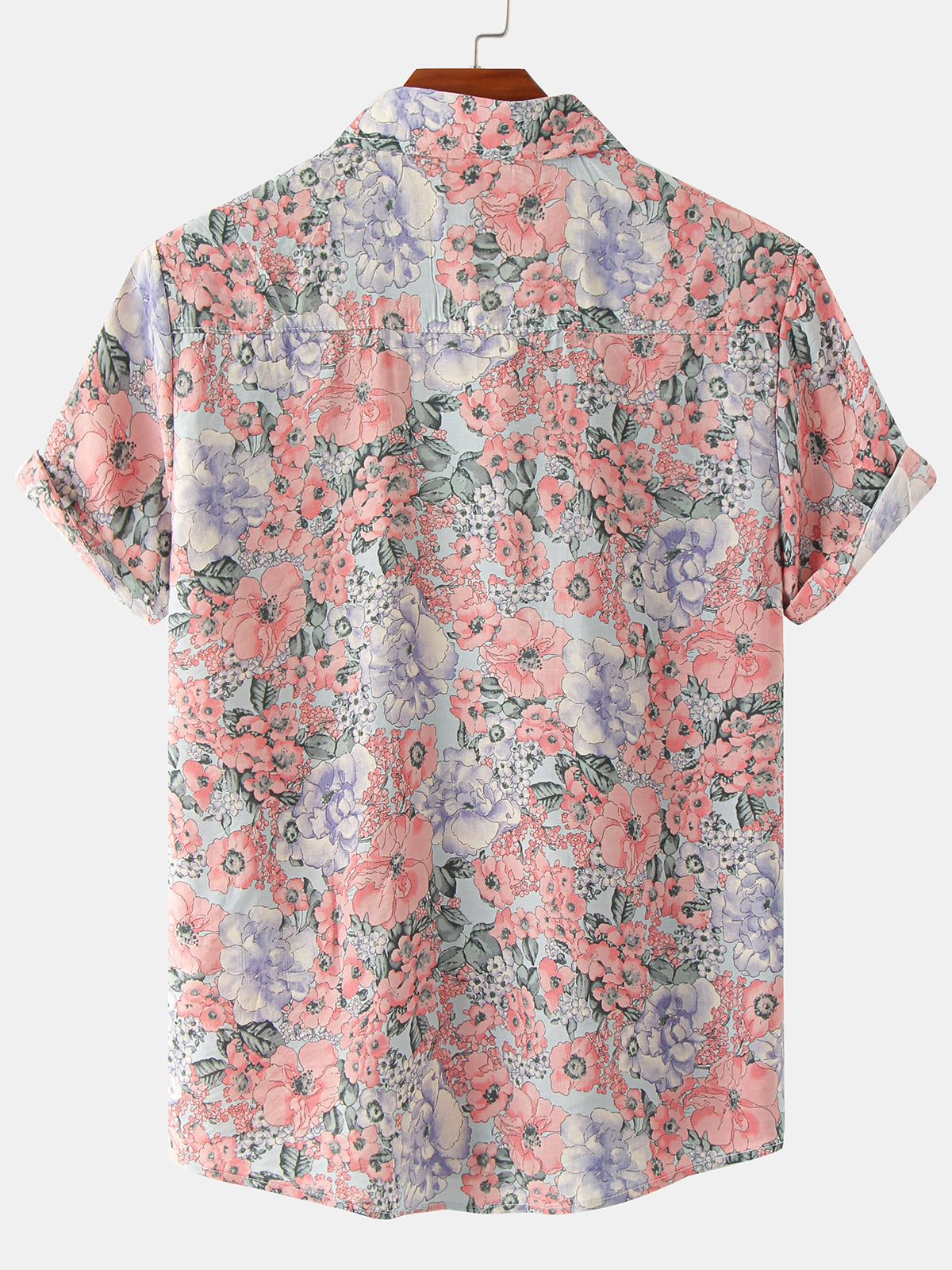 Men's Vintage Floral Print Summer Casual Pink Short Sleeve Shirt