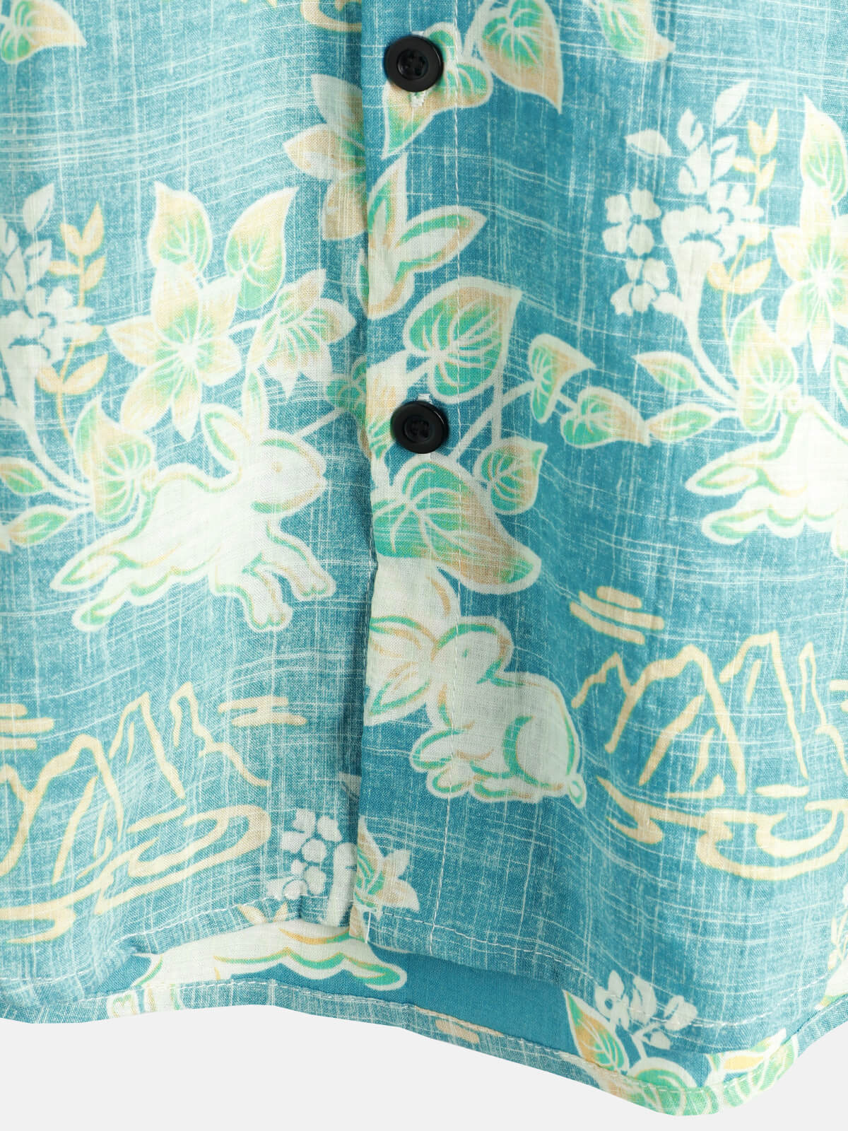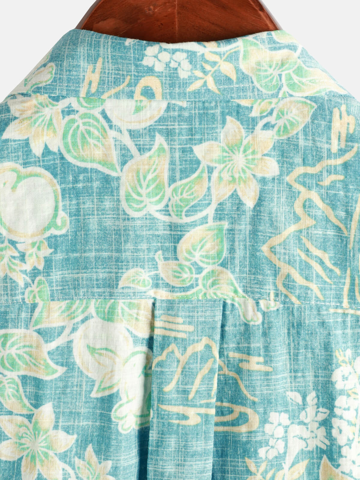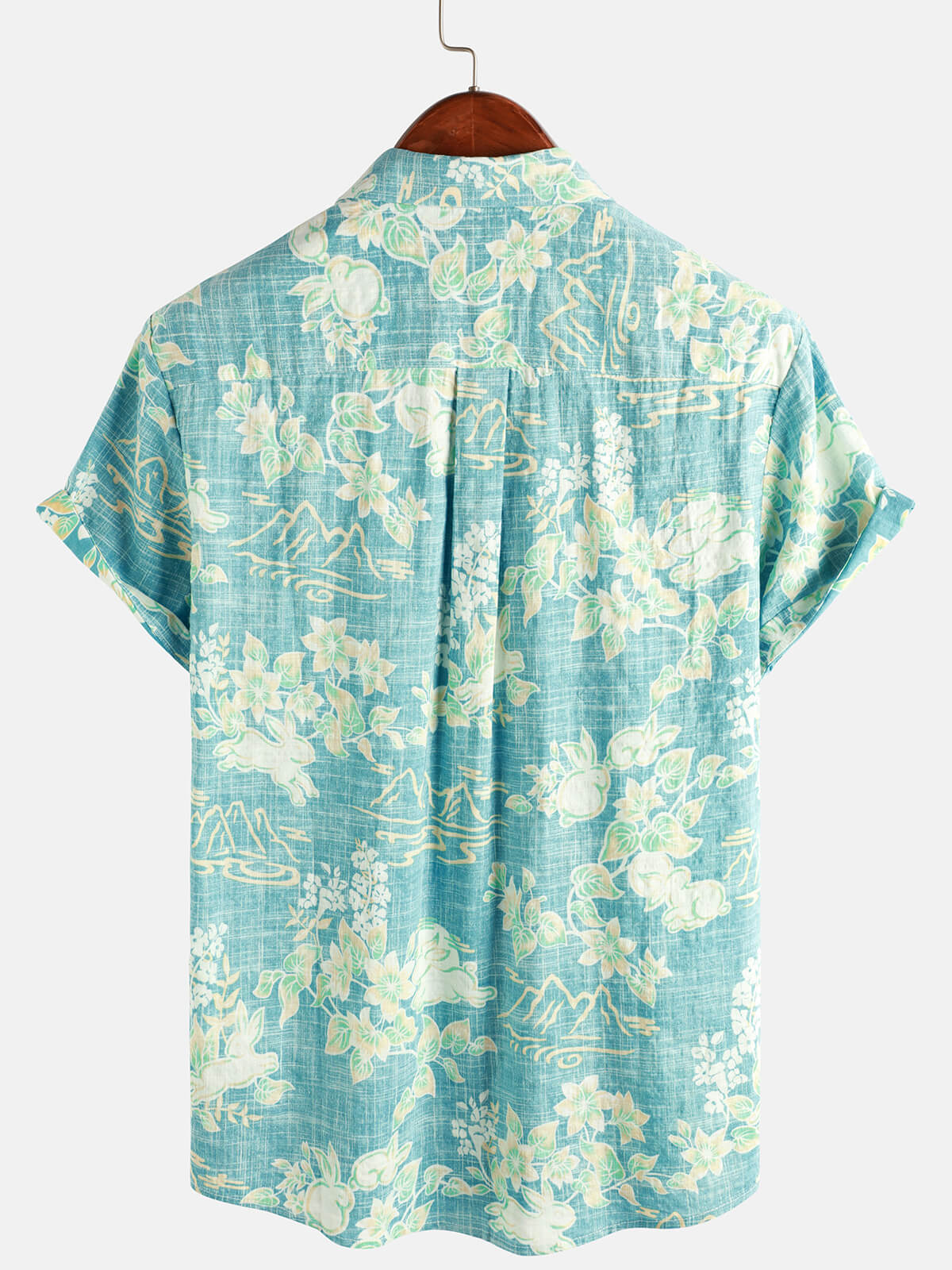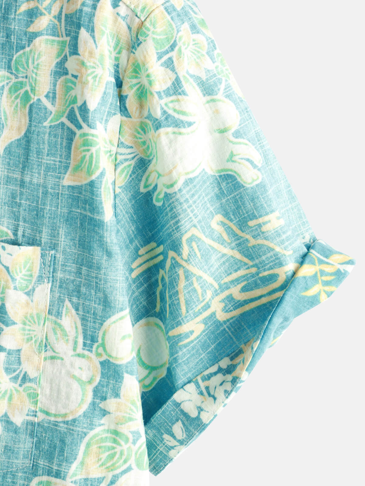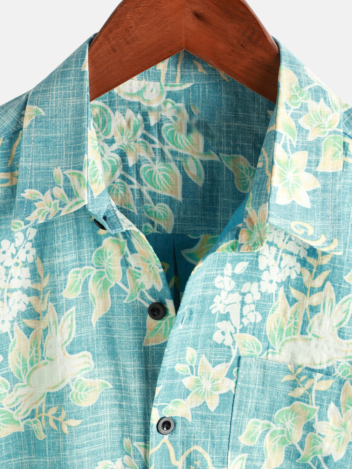 Men's Vintage Hawaiian Tropical Floral Print Pocket Beach Summer Short Sleeve Button Shirt