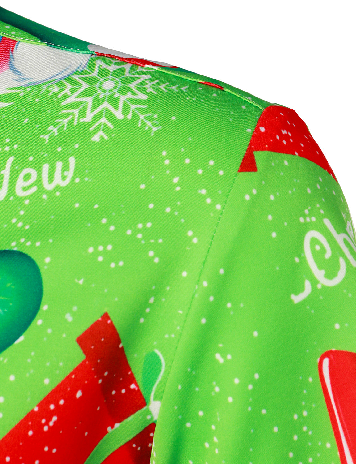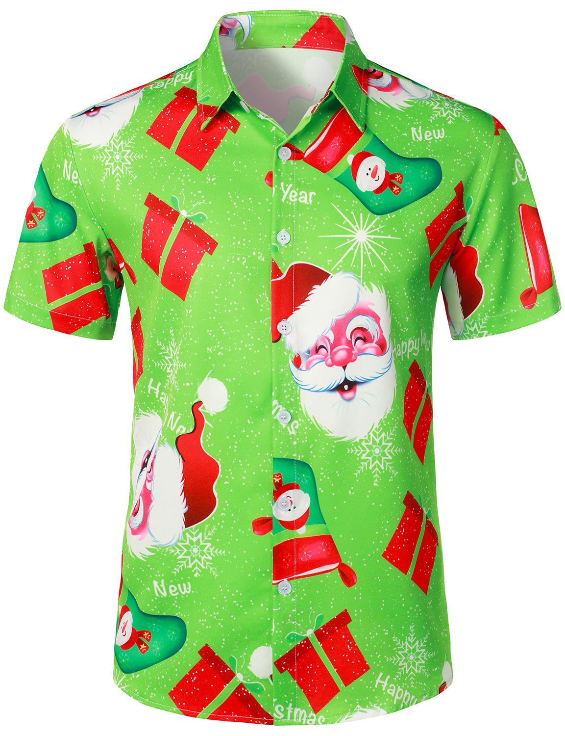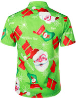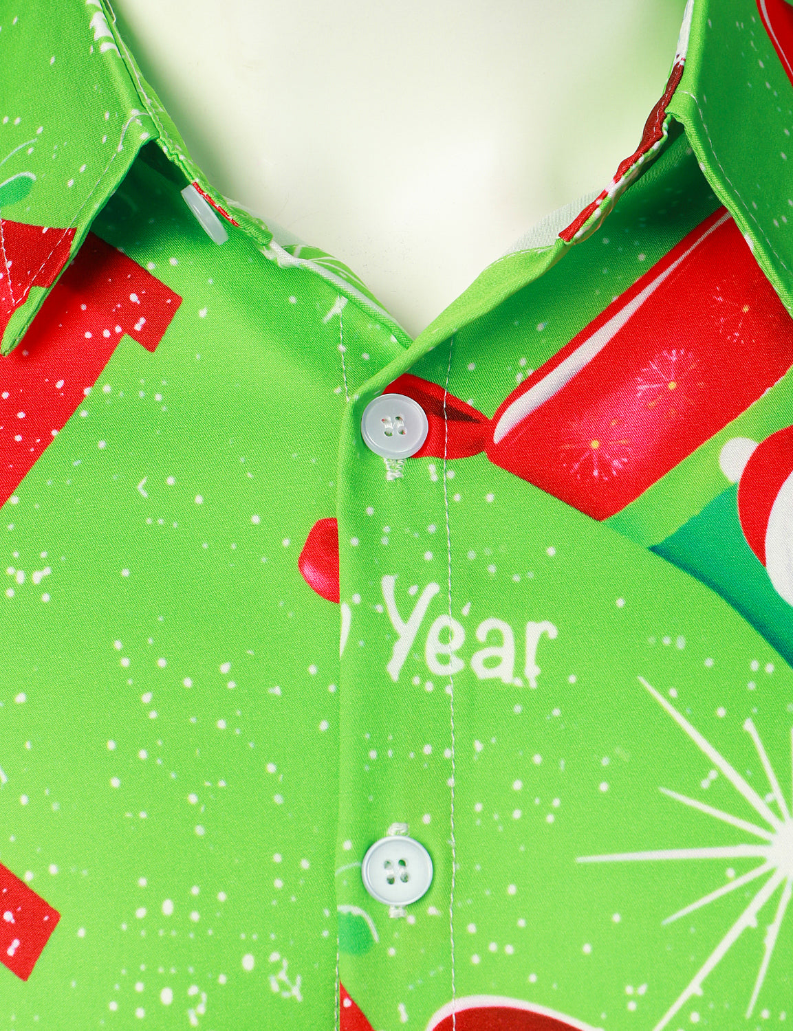 Men's Vintage Santa Claus And Gift Print Costume Green Funny Christmas Themed Short Sleeve Shirt