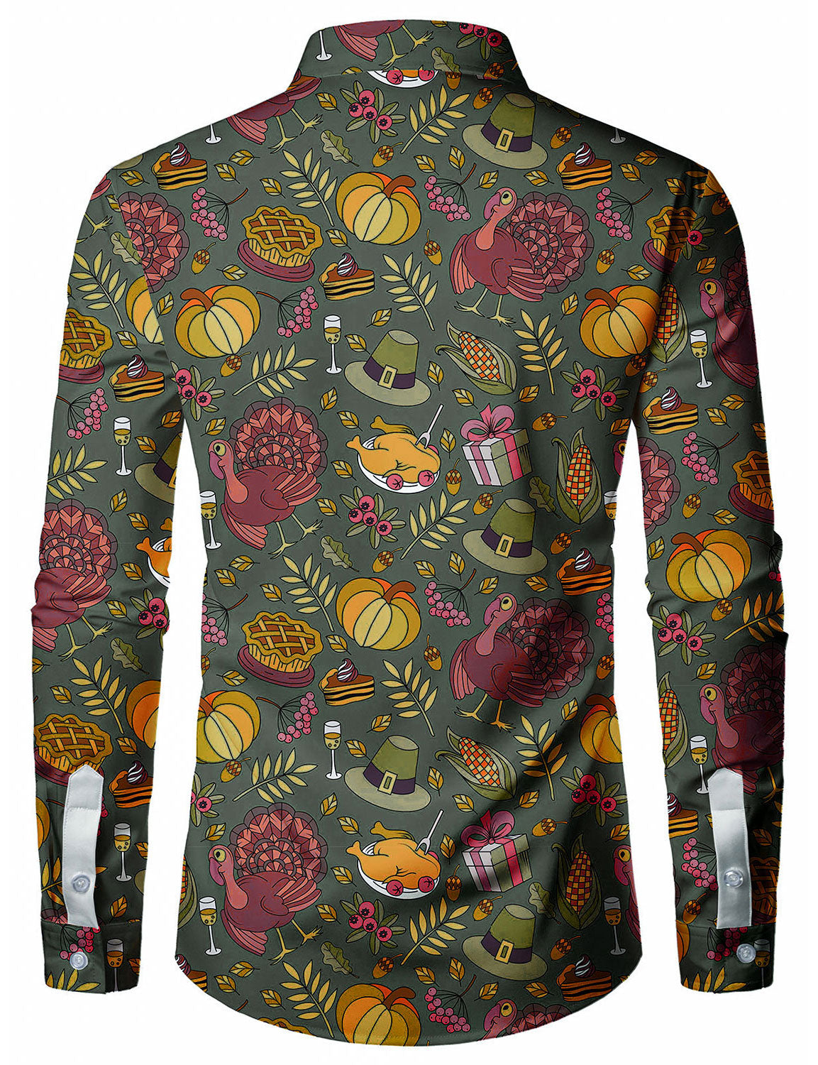 Men's Vintage Thanksgiving Turkey Pumpkin Long Sleeve Shirt