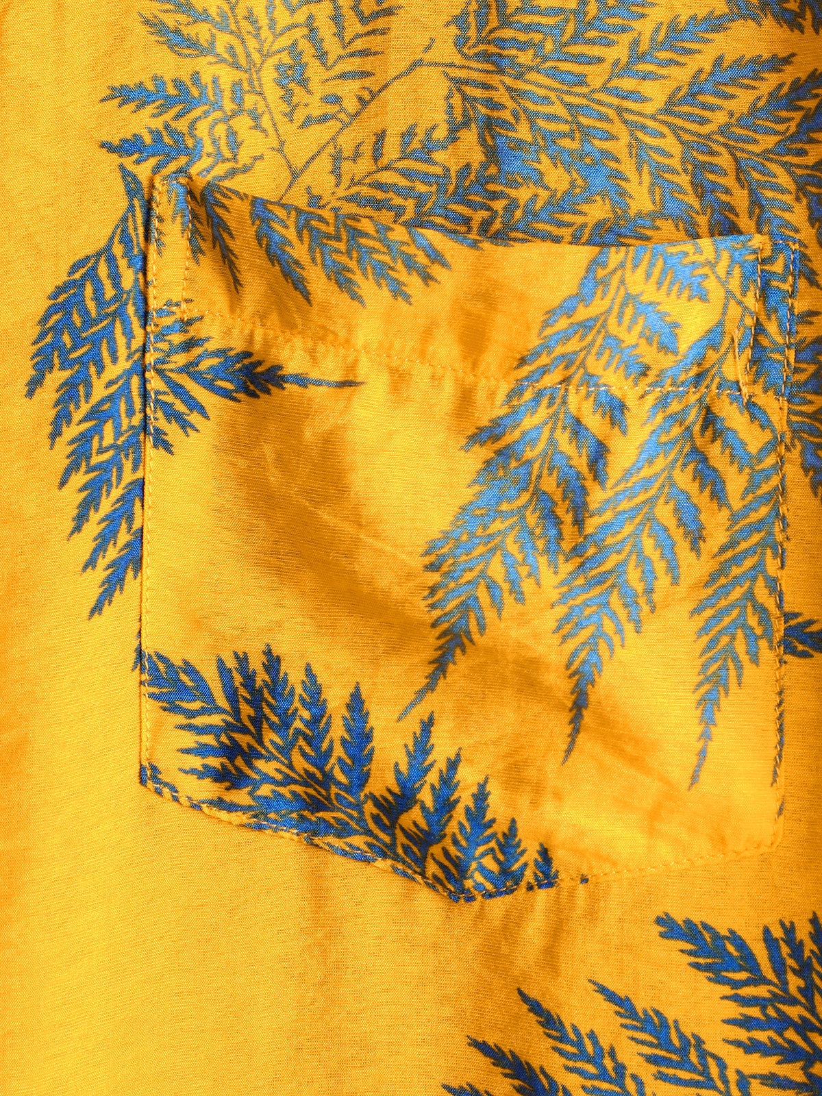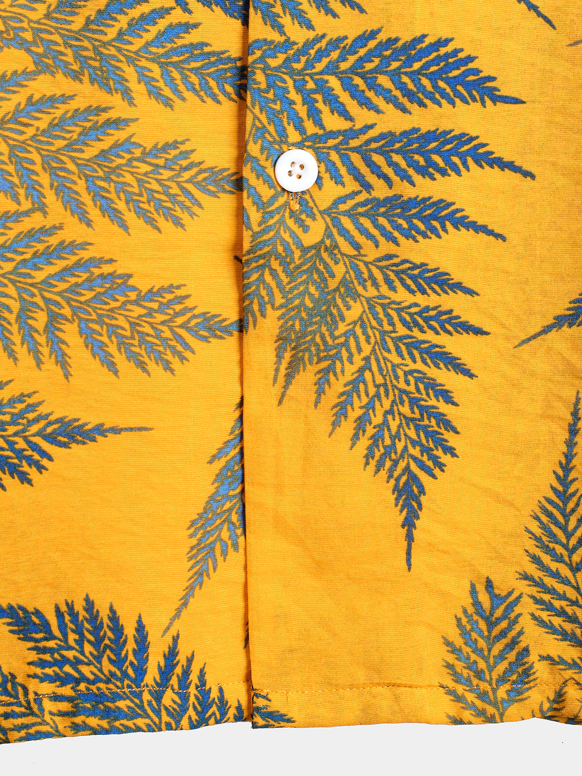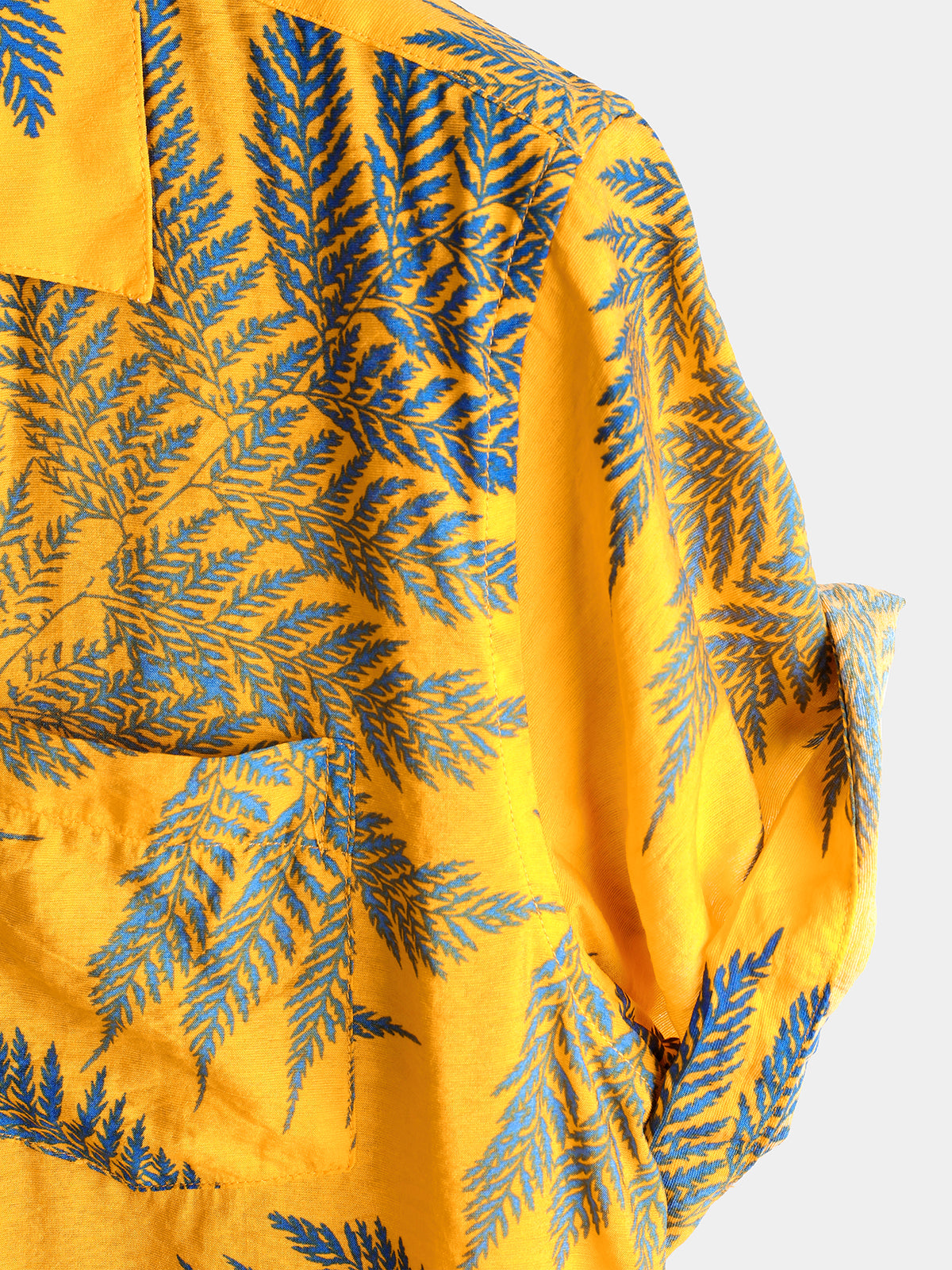 Men's Yellow Hawaiian Tropical Leaves Print Pocket Short Sleeve Shirt