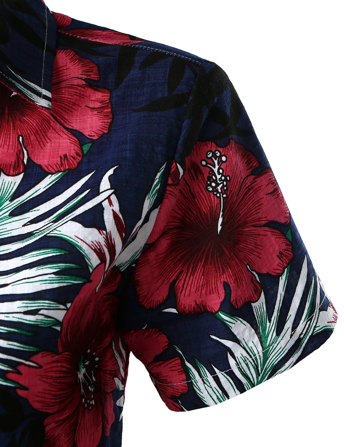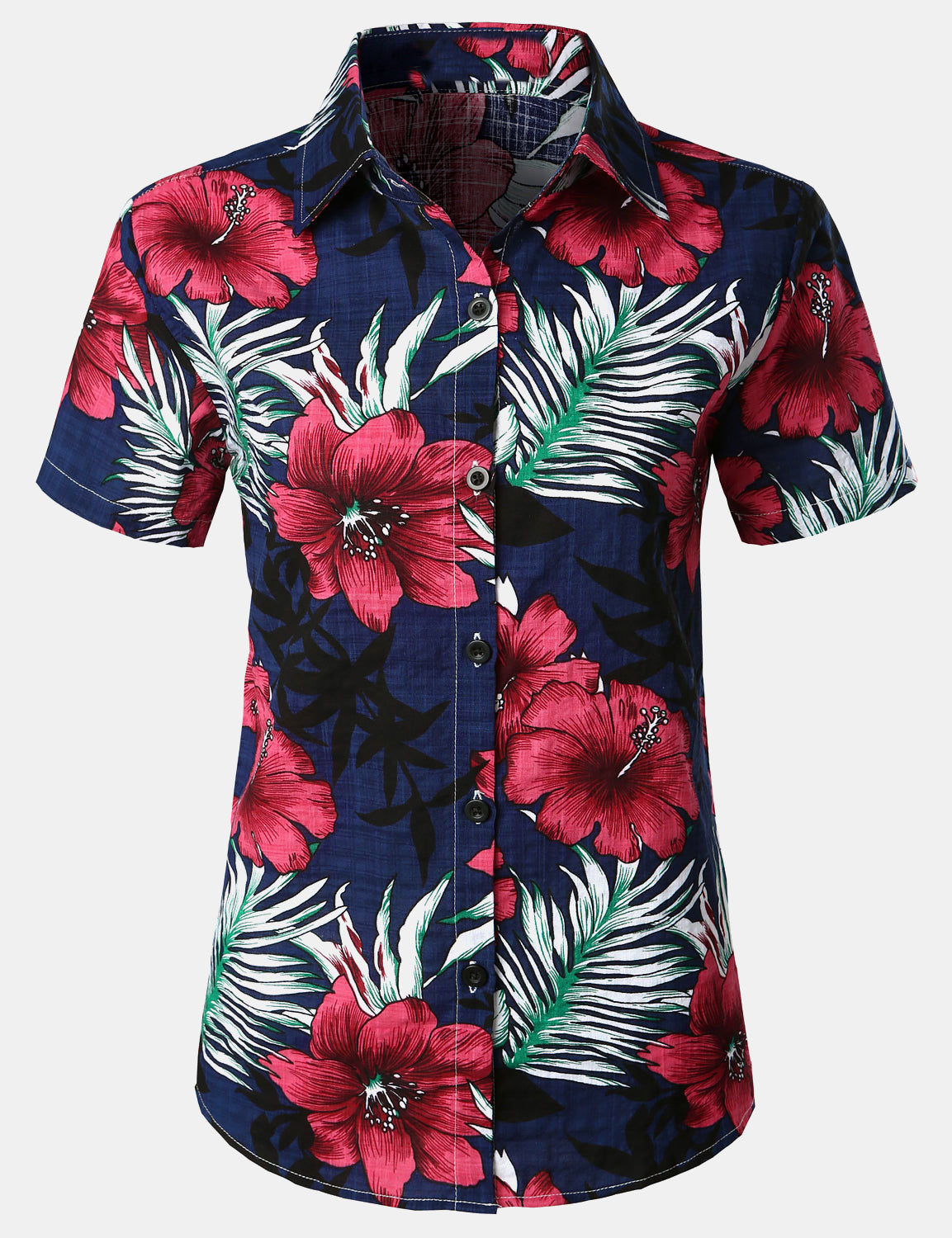 Women's Floral Print Blouse Flower Hawaiian Cotton Short Sleeve Beach Summer Aloha Shirt